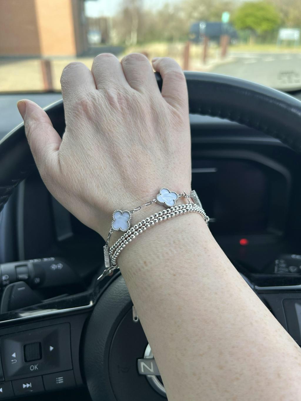 White Four Leaf Clover Double-Sided Bracelet, Silver Coloured